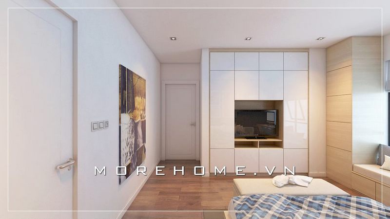Với hệ thống tủ quần áo âm tường hiện đại đem lại không gian phòng gọn gàng