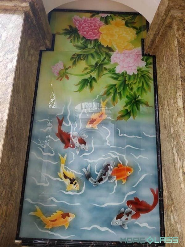 Tranh cá chép và hoa mẫu đơn thể hiện sư dư dả, sung túc trong cuộc sống nên được nhiều gia chủ lựa chọn để làm tranh treo trong nhà hoặc làm vách ốp tường