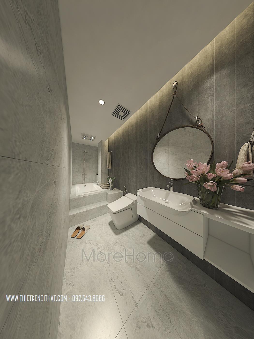 Đá MS008 sử dụng trong thiết tại biệt thự Bắc Giang mang tone màu trắng và xám chủ đạo, mang đường nét hiền đại sang trọng